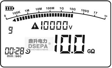 5、绝缘电阻测试仪每隔一定时间发出提示音(15秒、1分钟、10分钟)。