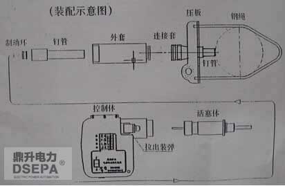 电缆刺扎器利用射钉枪原理,由精密的自动机械部件、先进的电子检测控制电路和机电控制部件构成,其结构示意见下图。